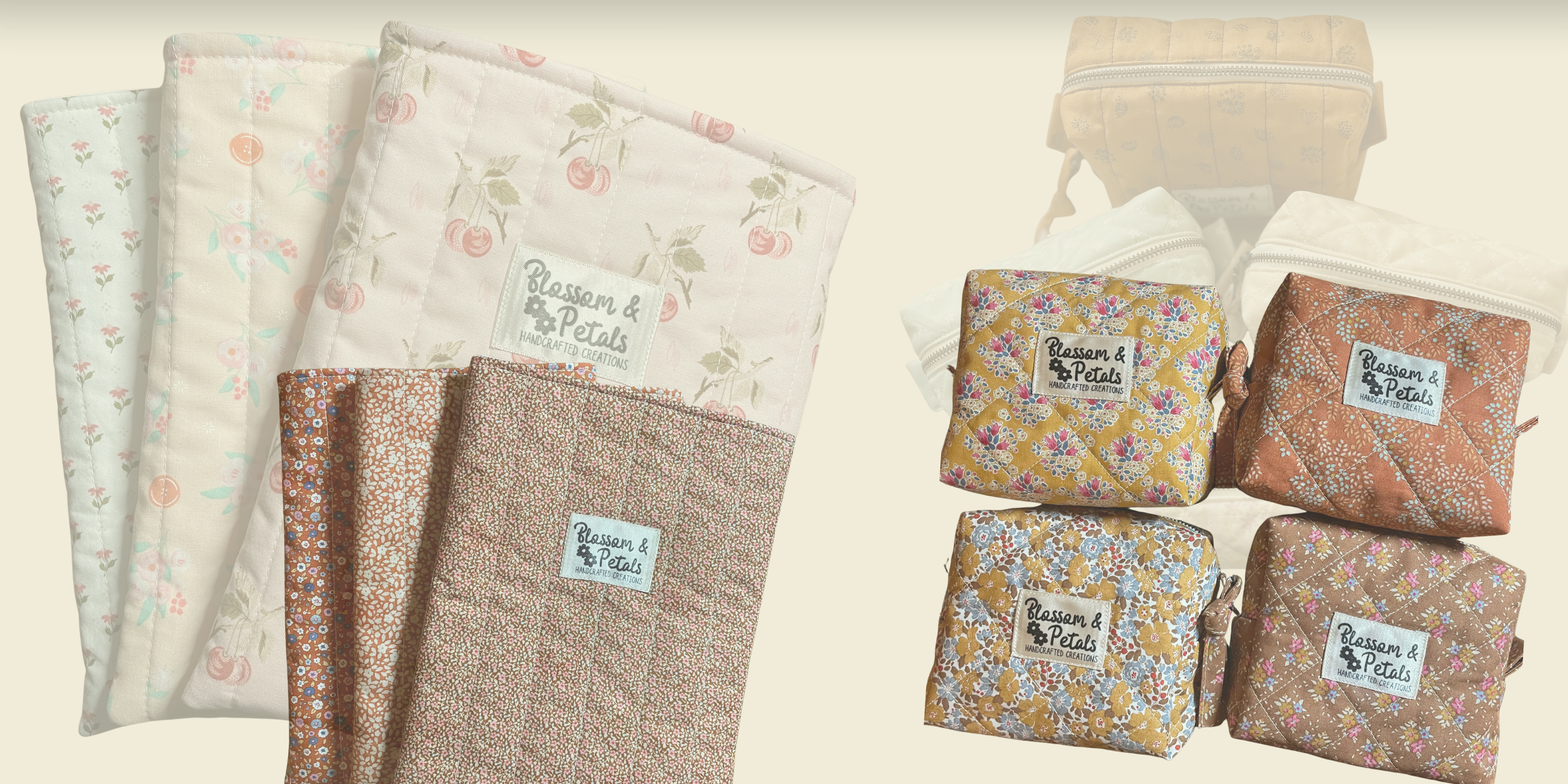Handmade Quilted Makeup Bag – Floral Zipper Pouch Gift